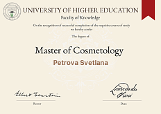 - Образование: Санкт-Петербургский государственный медицинский университет имени академика И.П. Павлова, факультет дерматологии, кандидат медицинских наук