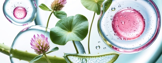 Экстракт красного клевера (Trifolium Pratense Extract) — богат изофлавонами, которые поддерживают гормональный баланс кожи. Улучшает микроциркуляцию, повышает тонус и упругость, оказывает мягкое успокаивающее действие и выравнивает цвет лица.