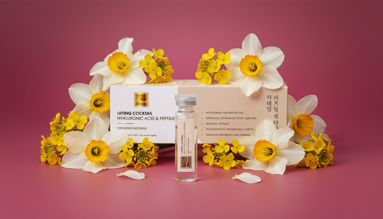 Регулярное применение пептидного коктейля совместно с аппаратными процедурами способствует интенсивному увлажнению, улучшению упругости кожи и усилению лифтингового эффекта.