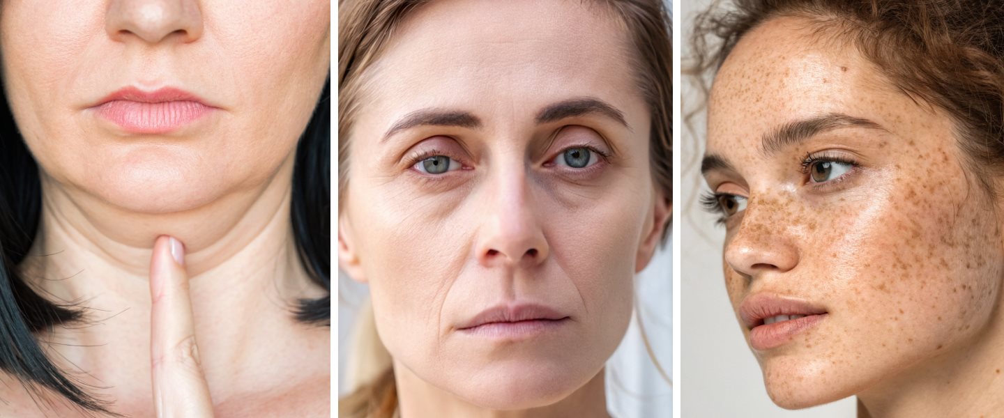 - Снижение тонуса, упругости, эластичности и плотности кожи;