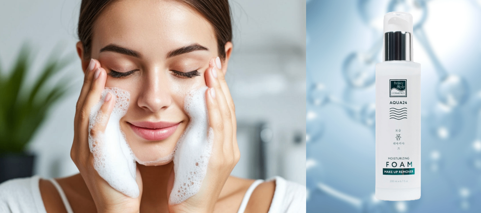 Нанесите небольшое количество увлажняющей пенки для демакияжа Аква 24 на лицо, мягко распределяя ее круговыми движениями. Смойте состав прохладной водой и аккуратно промокните зону воздействия одноразовой салфеткой.