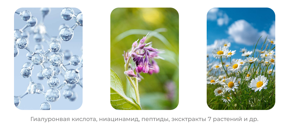 - Аллантоин. Снижает повышенную чувствительность раздраженной истонченной кожи. Убирает покраснения и шелушение. Мягко стимулирует процессы клеточного обновления, способствуя более свежему виду лица.