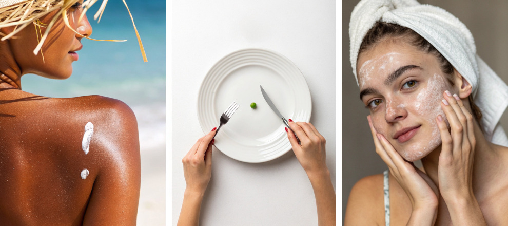 Запомните: открытое солнце это ваш главный враг при сухости кожи! В период высокой солнечной активности ультрафиолет способствует разрушению коллагена и эластина, нарушает гидролипидный баланс, повреждает защитный барьер, что приводит к обезвоживанию и раннему старению. Поэтому, в теплое время года обязательно используйте солнцезащитные средства с SPF 30-50. Не забывайте, что защита от солнца требуется и зимой в снежную погоду, так как снег отражает солнечные лучи.