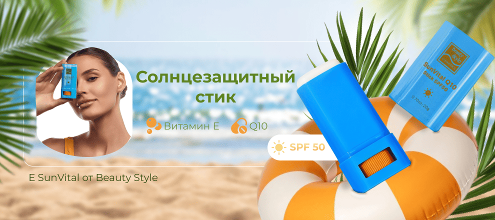Солнцезащитный cтик SPF50 с Q10 и Витамином Е SunVital Beauty Style