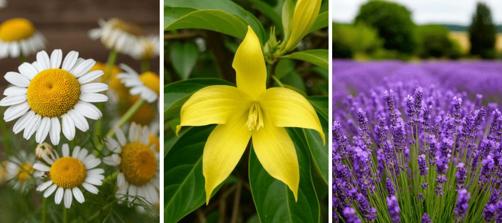 - Иланг-иланг — устраняет головные боли и стресс, действует как афродизиак.