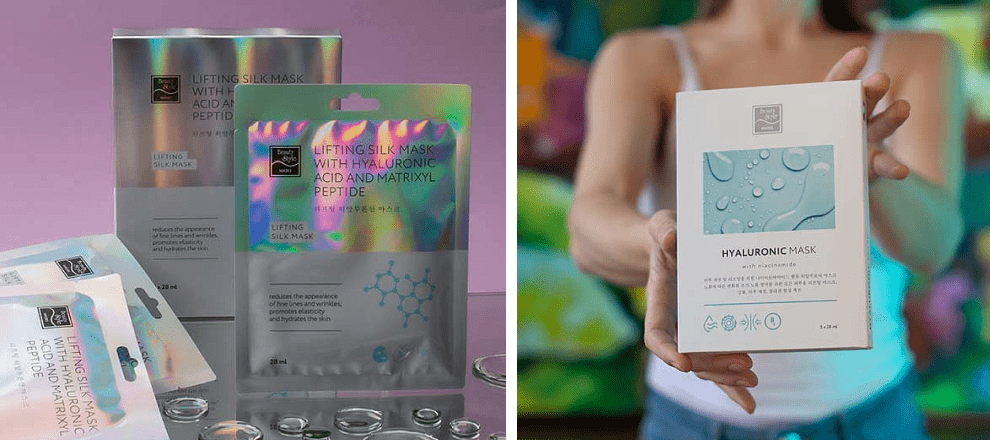 Примером такой маски является гиалуроновая шелковая лифтинг-маска с пептидами от Beauty Style. Данная маска для лица помогает замедлить процесс появления морщин, улучшает текстуру и цвет кожи. Он подходит для применения начиная с 30 лет, особенно для кожи, склонной к потере упругости и усталости. Лифтинг-эффект обеспечивается за счет пептидов (матриксил и аргирелин), а гиалуроновая кислота восстанавливает гидробаланс, разглаживает микрорельеф и борется с последствиями оксидативного стресса.