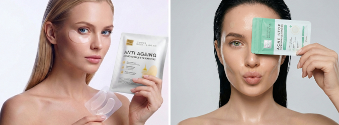 Две целевые инновации — гидрогелевые патчи с растворимыми микроиглами для зоны глаз и патчи от акне — позволяют доставлять активы точечно и эффективно, без уколов.